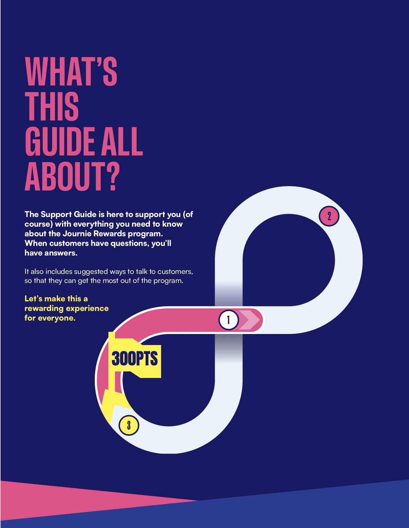 A 35-page booklet that explains the Journie Rewards program to employees. Don’t worry, you don’t have to read the whole thing — I only included a few of the greatest hits. Plus, I made the copy fun to read … well, more fun than most instructional manuals.